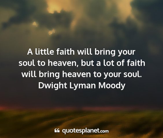 A little faith will bring your soul to heaven, but a lot of faith will bring heaven to your soul.Dwight Lyman Moody