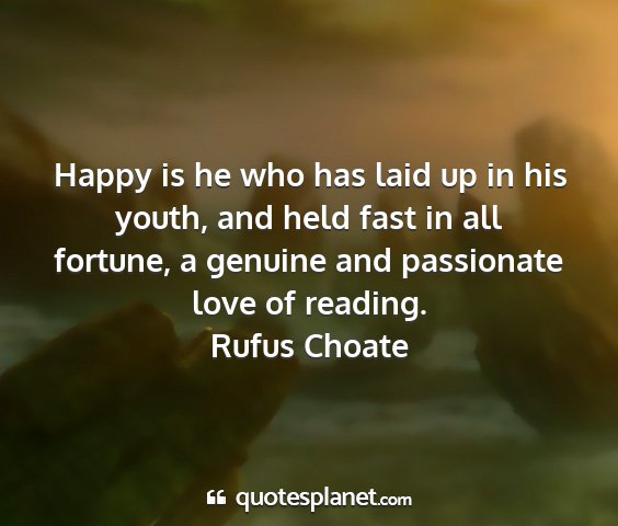 Happy is he who has laid up in his youth, and held fast in all fortune, a genuine and passionate love of reading.Rufus Choate