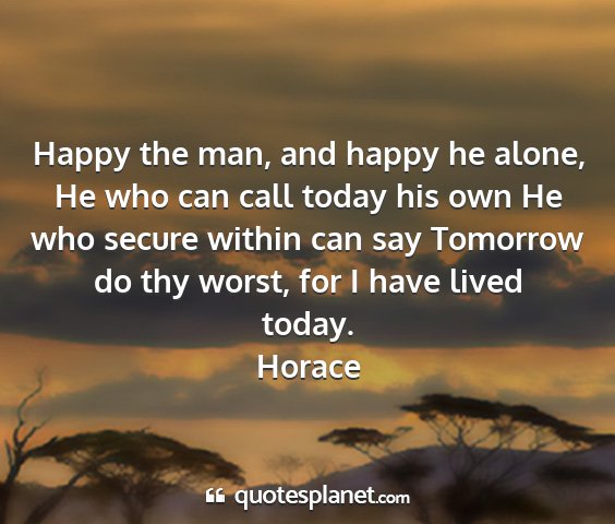 Happy the man, and happy he alone, He who can call today his own He who secure within can say Tomorrow do thy worst, for I have lived today.Horace
