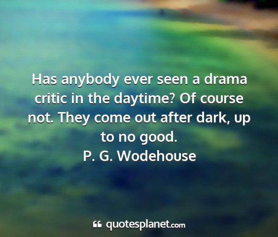 P. g. wodehouse - has anybody ever seen a drama critic in the...