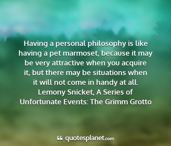 Having a personal philosophy is like having a pet marmoset, because it may be very attractive when you acquire it, but there may be situations when it will not come in handy at all.Lemony Snicket, A Series of Unfortunate Events: The Grimm Grotto