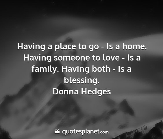 Having a place to go - Is a home. Having someone to love - Is a family. Having both - Is a blessing.Donna Hedges