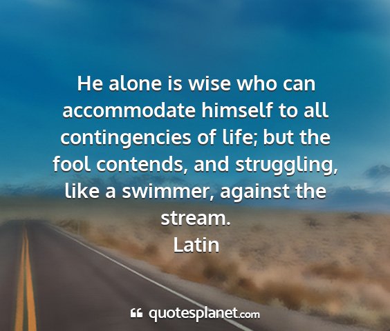 He alone is wise who can accommodate himself to all contingencies of life; but the fool contends, and struggling, like a swimmer, against the stream.Latin