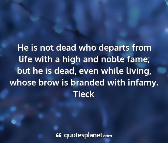 He is not dead who departs from life with a high and noble fame; but he is dead, even while living, whose brow is branded with infamy.Tieck