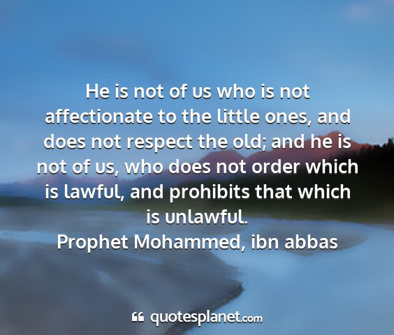 He is not of us who is not affectionate to the little ones, and does not respect the old; and he is not of us, who does not order which is lawful, and prohibits that which is unlawful.Prophet Mohammed, ibn abbas