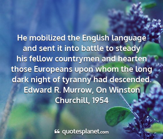 He mobilized the English language and sent it into battle to steady his fellow countrymen and hearten those Europeans upon whom the long dark night of tyranny had descended.Edward R. Murrow, On Winston Churchill, 1954