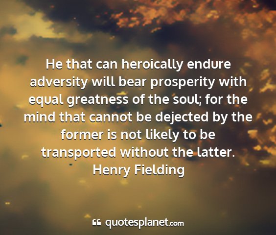 He that can heroically endure adversity will bear prosperity with equal greatness of the soul; for the mind that cannot be dejected by the former is not likely to be transported without the latter.Henry Fielding