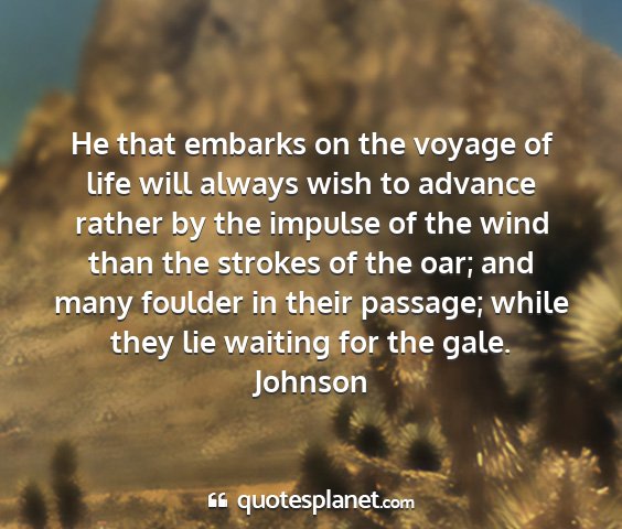 He that embarks on the voyage of life will always wish to advance rather by the impulse of the wind than the strokes of the oar; and many foulder in their passage; while they lie waiting for the gale.Johnson