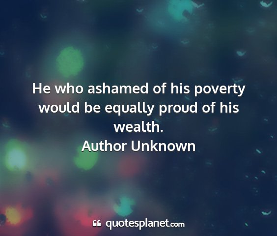 He who ashamed of his poverty would be equally proud of his wealth.
