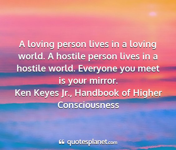 A loving person lives in a loving world. A hostile person lives in a hostile world. Everyone you meet is your mirror.Ken Keyes Jr., Handbook of Higher Consciousness