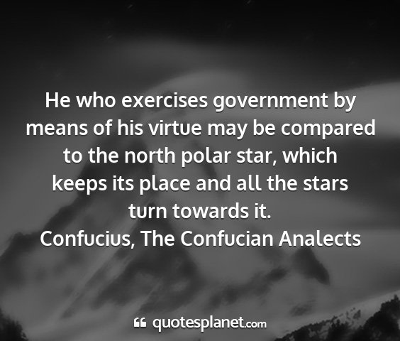 He who exercises government by means of his virtue may be compared to the north polar star, which keeps its place and all the stars turn towards it.Confucius, The Confucian Analects