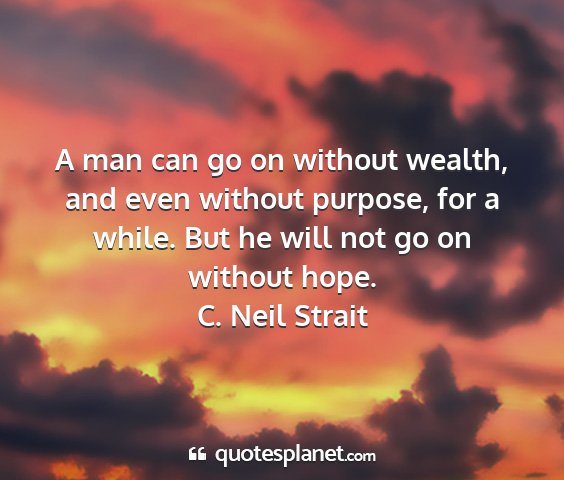 A man can go on without wealth, and even without purpose, for a while. But he will not go on without hope.C. Neil Strait