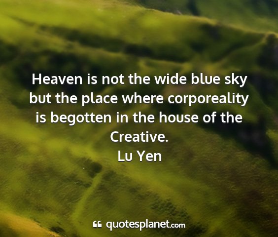 Heaven is not the wide blue sky but the place where corporeality is begotten in the house of the Creative.Lu Yen