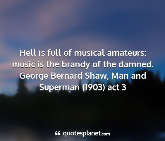 Hell is full of musical amateurs: music is the brandy of the damned.George Bernard Shaw, Man and Superman (1903) act 3