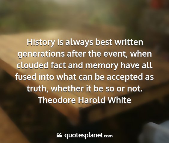 History is always best written generations after the event, when clouded fact and memory have all fused into what can be accepted as truth, whether it be so or not.Theodore Harold White