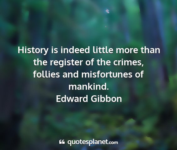History is indeed little more than the register of the crimes, follies and misfortunes of mankind.Edward Gibbon