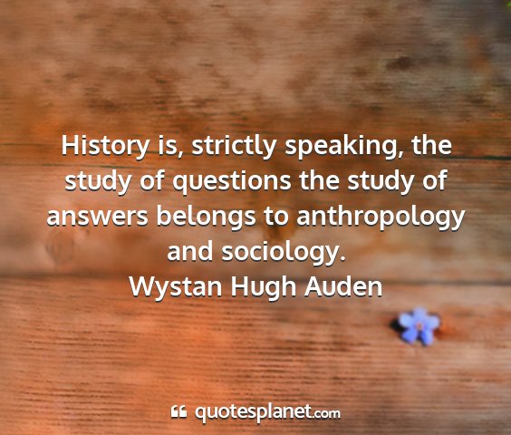 History is, strictly speaking, the study of questions the study of answers belongs to anthropology and sociology.Wystan Hugh Auden