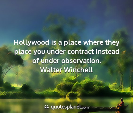 Hollywood is a place where they place you under contract instead of under observation.Walter Winchell