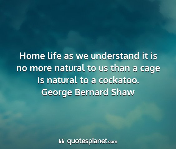 Home life as we understand it is no more natural to us than a cage is natural to a cockatoo.George Bernard Shaw