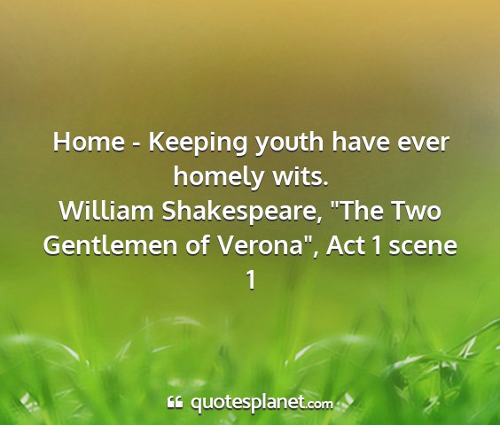 Home - Keeping youth have ever homely wits.William Shakespeare, "The Two Gentlemen of Verona", Act 1 scene 1