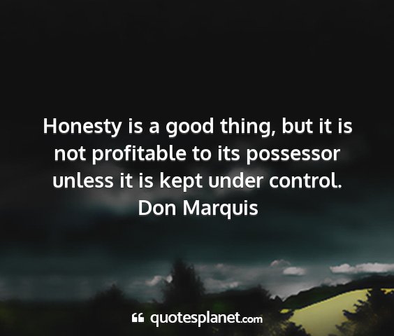 Honesty is a good thing, but it is not profitable to its possessor unless it is kept under control.Don Marquis