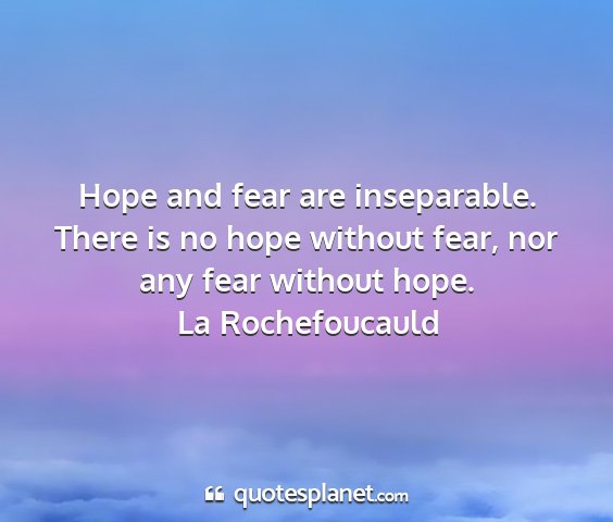Hope and fear are inseparable. There is no hope without fear, nor any fear without hope.La Rochefoucauld