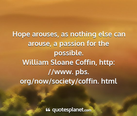 Hope arouses, as nothing else can arouse, a passion for the possible.William Sloane Coffin, http: //www. pbs. org/now/society/coffin. html