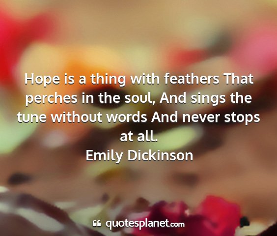 Hope is a thing with feathers That perches in the soul, And sings the tune without words And never stops at all.Emily Dickinson