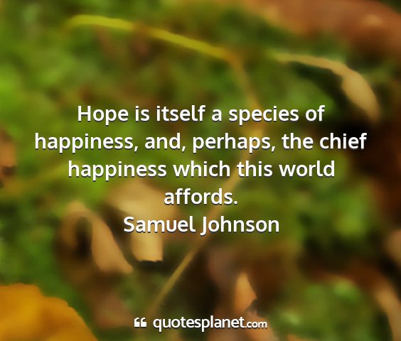 Hope is itself a species of happiness, and, perhaps, the chief happiness which this world affords.Samuel Johnson