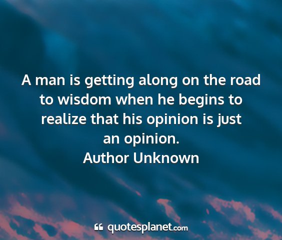 A man is getting along on the road to wisdom when he begins to realize that his opinion is just an opinion.Author Unknown