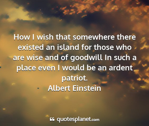How I wish that somewhere there existed an island for those who are wise and of goodwill In such a place even I would be an ardent patriot.Albert Einstein