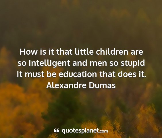 How is it that little children are so intelligent and men so stupid It must be education that does it.Alexandre Dumas