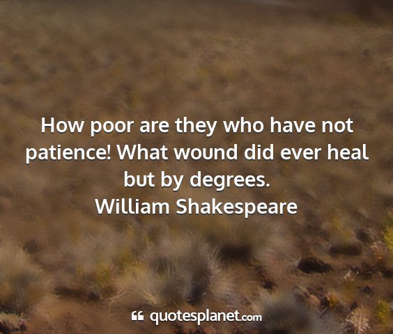How poor are they who have not patience! What wound did ever heal but by degrees.