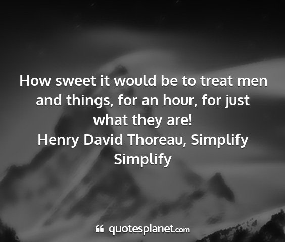 How sweet it would be to treat men and things, for an hour, for just what they are!Henry David Thoreau, Simplify Simplify