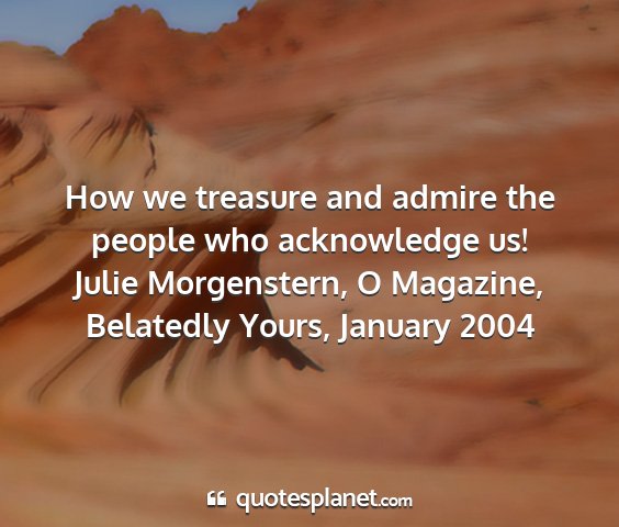 How we treasure and admire the people who acknowledge us!Julie Morgenstern, O Magazine, Belatedly Yours, January 2004