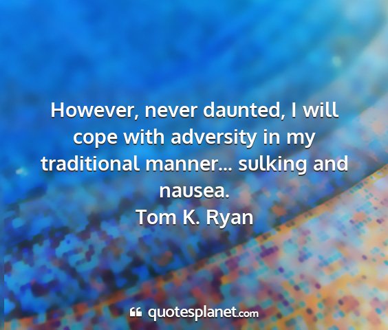 However, never daunted, I will cope with adversity in my traditional manner... sulking and nausea.Tom K. Ryan