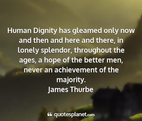 Human Dignity has gleamed only now and then and here and there, in lonely splendor, throughout the ages, a hope of the better men, never an achievement of the majority.James Thurbe