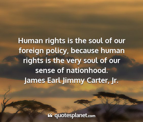 Human rights is the soul of our foreign policy, because human rights is the very soul of our sense of nationhood.James Earl Jimmy Carter, Jr.