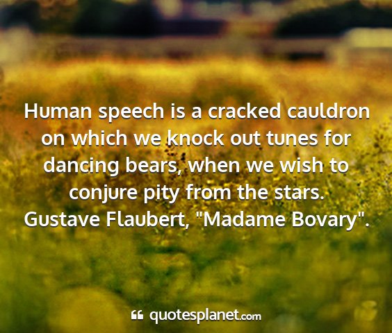 Human speech is a cracked cauldron on which we knock out tunes for dancing bears, when we wish to conjure pity from the stars.Gustave Flaubert, "Madame Bovary".