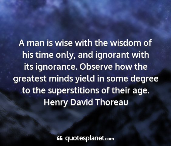 A man is wise with the wisdom of his time only, and ignorant with its ignorance. Observe how the greatest minds yield in some degree to the superstitions of their age.Henry David Thoreau
