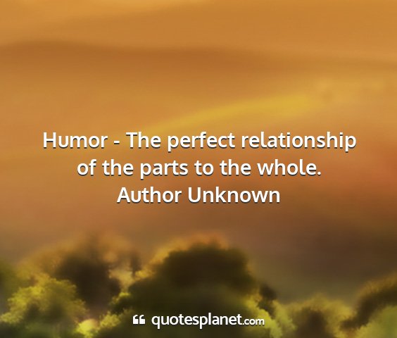 Humor - The perfect relationship of the parts to the whole.