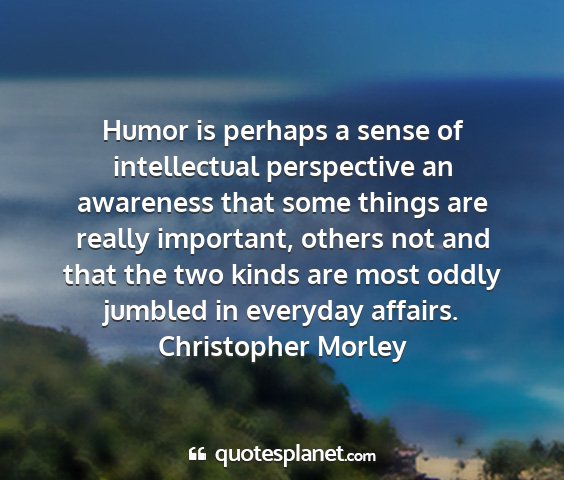 Humor is perhaps a sense of intellectual perspective an awareness that some things are really important, others not and that the two kinds are most oddly jumbled in everyday affairs.Christopher Morley