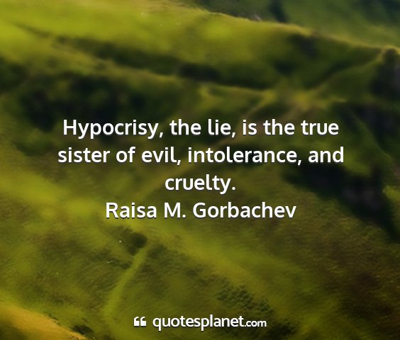Hypocrisy, the lie, is the true sister of evil, intolerance, and cruelty.
