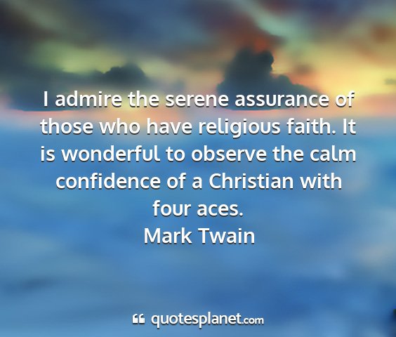 I admire the serene assurance of those who have religious faith. It is wonderful to observe the calm confidence of a Christian with four aces.Mark Twain