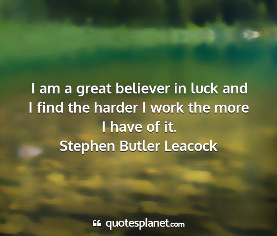 I am a great believer in luck and I find the harder I work the more I have of it.Stephen Butler Leacock