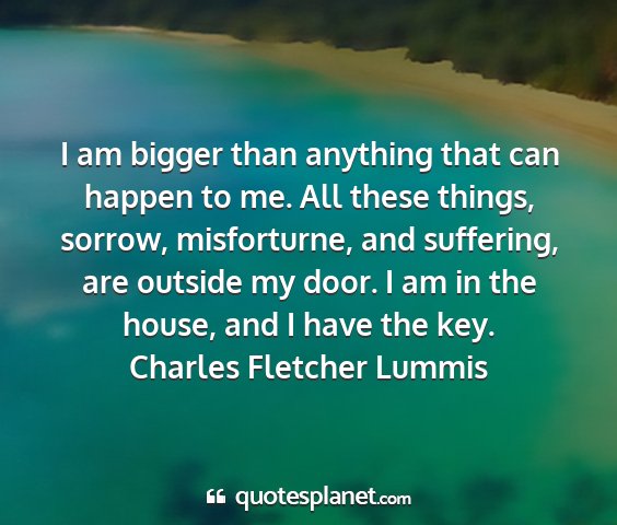 I am bigger than anything that can happen to me. All these things, sorrow, misforturne, and suffering, are outside my door. I am in the house, and I have the key.Charles Fletcher Lummis