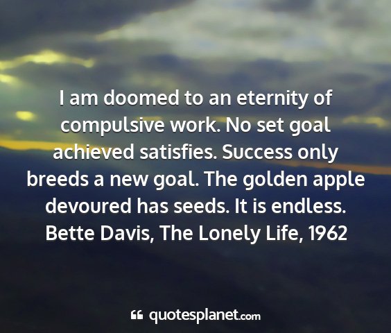 I am doomed to an eternity of compulsive work. No set goal achieved satisfies. Success only breeds a new goal. The golden apple devoured has seeds. It is endless.Bette Davis, The Lonely Life, 1962