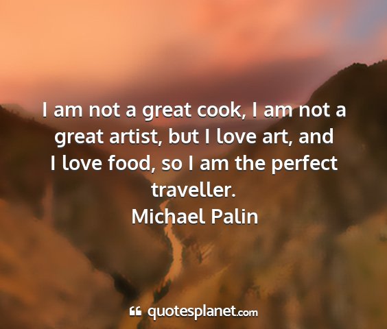 I am not a great cook, I am not a great artist, but I love art, and I love food, so I am the perfect traveller.Michael Palin