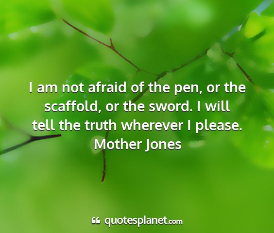 I am not afraid of the pen, or the scaffold, or the sword. I will tell the truth wherever I please.Mother Jones