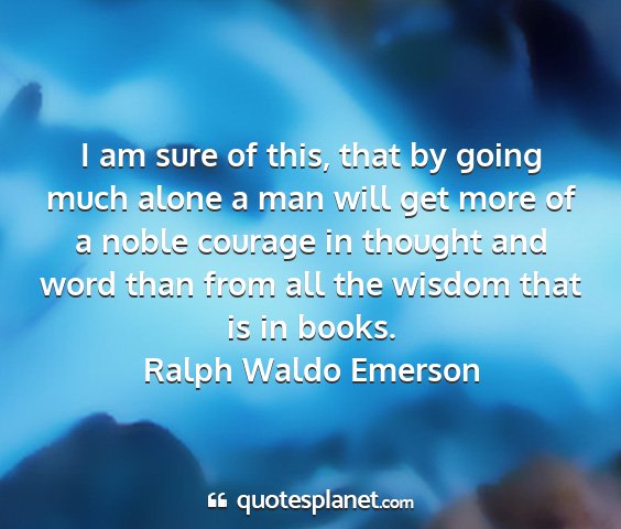 I am sure of this, that by going much alone a man will get more of a noble courage in thought and word than from all the wisdom that is in books.Ralph Waldo Emerson